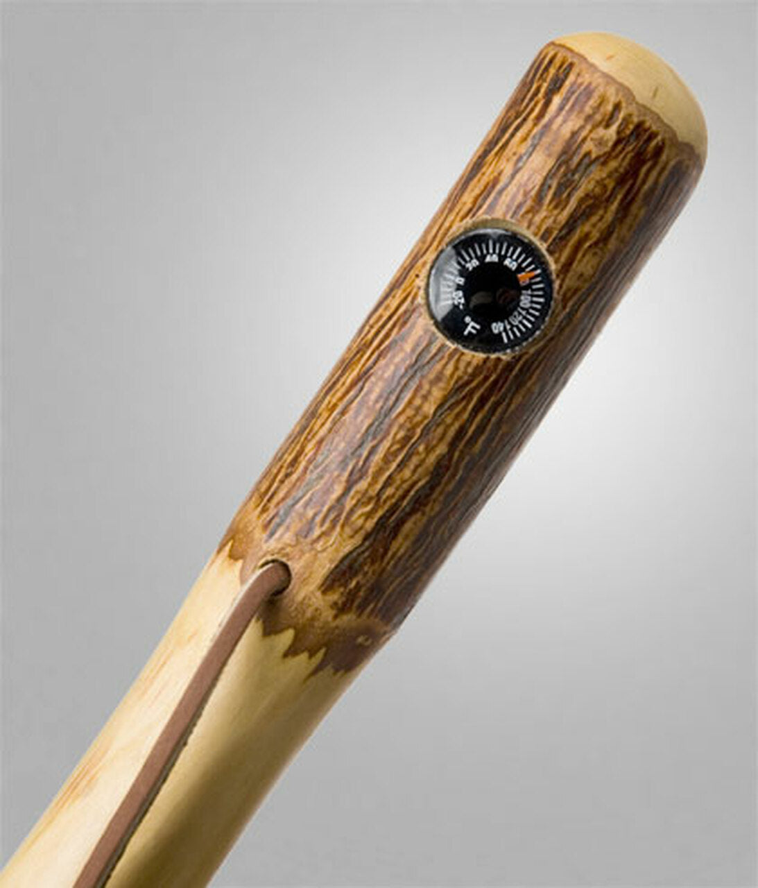 This Fahrenheit Thermometer registers temperatures between -20 and 140 degrees. It's liquid-filled and grade A quality. Made in America, One at a Time Unlike sterile, lifeless metal canes and poles, Brazos walking canes offer natural appeal because they are made from real wood. You can see the fine detail and beauty of the actual tree when you look at one. Each cane is a work of art. Plus, because they are solid wood, there are no moving parts to become unstable. Brazos Walking Sticks is family operated and located in the beautiful Brazos River Valley of Central Texas. Each walking stick is handcrafted by skilled local craftsmen. Make it Uniquely Yours All our hiking sticks can be personalized with laser engraving, making them uniquely yours. Walking sticks and canes can be further customized with accessories listed above, per your choice.