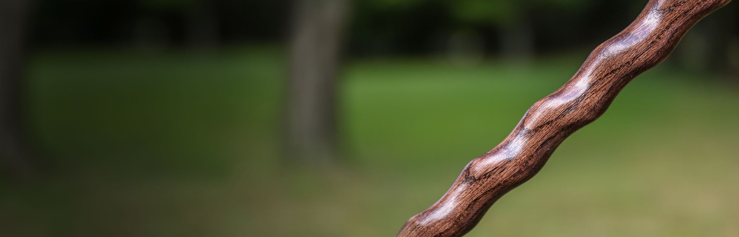 Traditional walking sticks, hiking sticks and trekking poles are completely milled and formed from a wood blank. Theses handcrafted walking sticks (or canes) use traditional patterns for shape and function. All of our handmade wooden walking sticks are individually crafted from the finest woods including oak, hickory and many other exotic and native trees. Each of our handcrafted walking sticks is made by our artisan craftsmen in central Texas, not far from the Brazos River. Most of our custom walking stick blanks are naturally harvested in the nearby woods of Arkansas, east Texas, western Louisiana, and the high mountain deserts of New Mexico. Before each custom traditional walking stick is created, the raw wood blank is carefully inspected for hidden flaws that might affect the structural integrity of the handmade wooden walking stick’s shaft. Only the raw blanks that show the highest strength are chosen for use in our handcrafted walking sticks. After the structural inspection, the raw wood blank is shaped on a lathe or a sander depending on the style of the stick. Most of our traditional walking sticks have handles shaped directly from the wood blank; others -- such as our Shepherd's Crook -- are slowly bent to take on a distinctive crook shape. Once shaped and sanded, the custom traditional stick is ready for the finish. Depending on the style of stick, a clear or tinted finish is applied. The resulting finish highlights the natural beauty of the wood. Our handcrafted walking sticks come in various sizes that will fit young children to tall adults. Serious hikers might like our traveler’s walking stick that can be taken apart or our fitness walker for use as trekking poles. Serious hikers can add a compass to their hiking stick, a spike ferrule, a combination spike, or the classy Lee Valley Spike system. We guarantee that you will enjoy our hiking sticks and trekking poles for many years. Once you own a Brazos™ Walking Stick, you will want to start hiking as much as you can!
